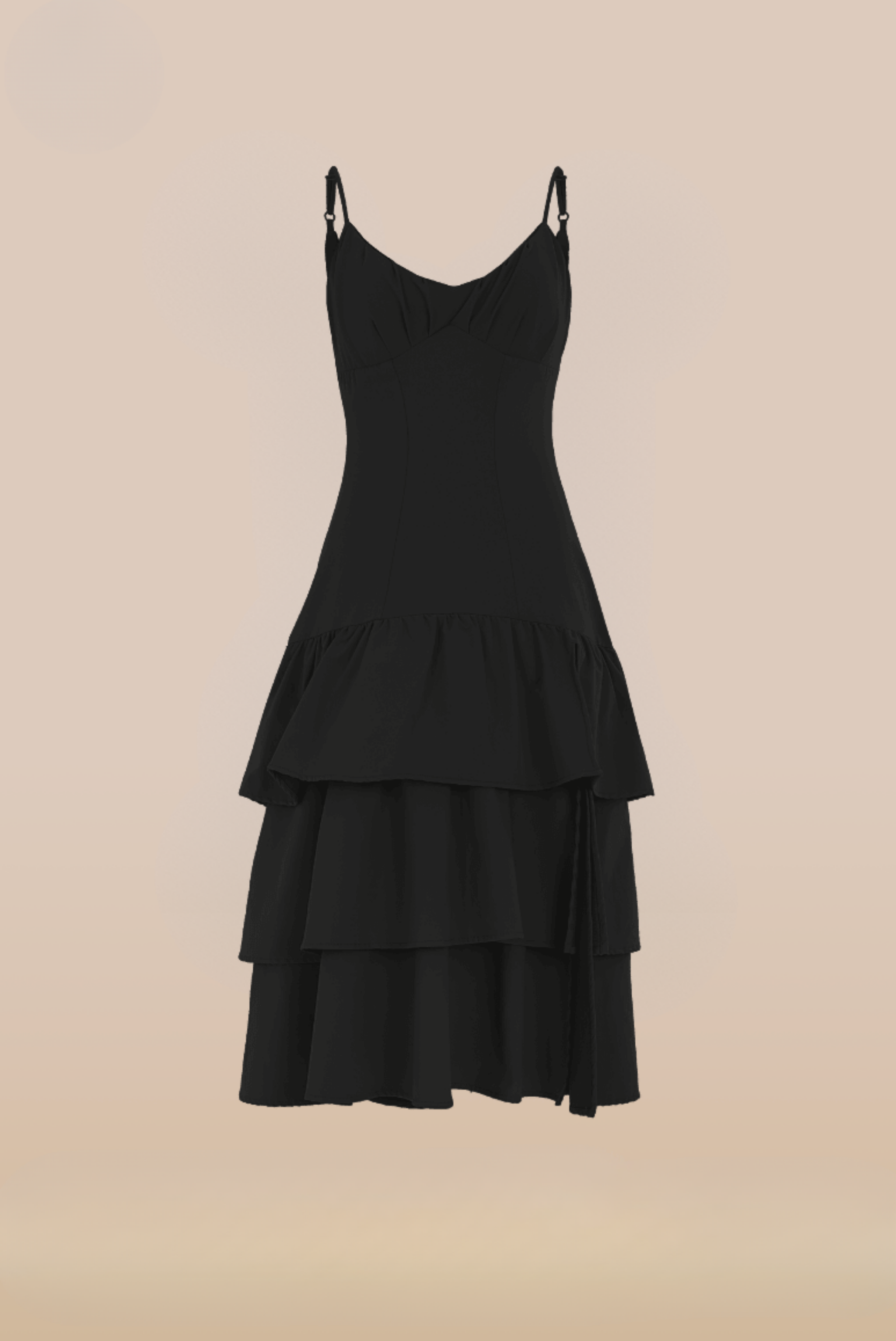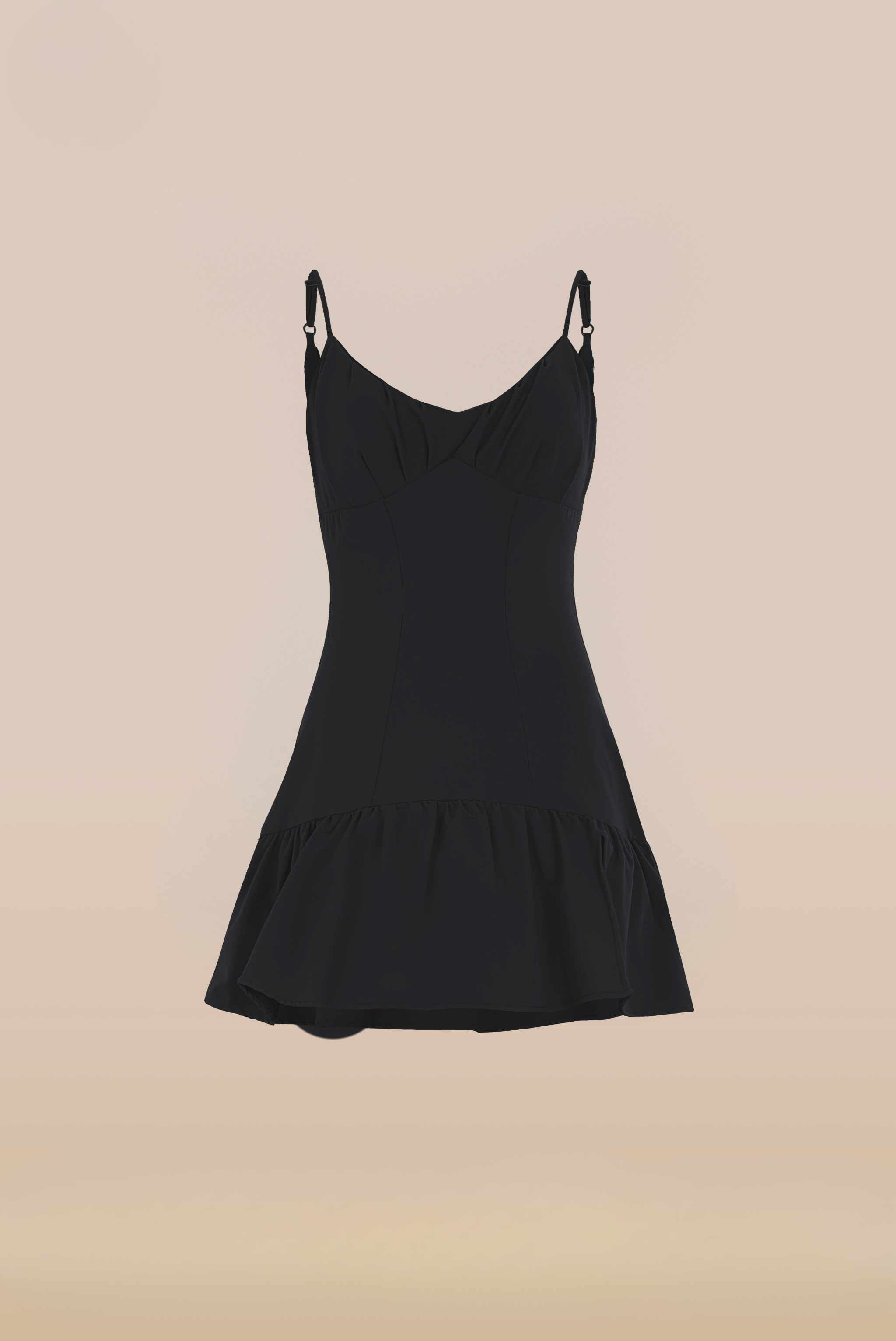 Introducing the travel dress of your dreams. Crafted from sustainable, travel-proof fabrics, this versatile two-in-one dress features a fitted bodice and curved drop-waist that extends into a three-tier, ruffled skirt. From the easy pull of a hidden zipper, it converts from a flamenco-inspired midi dress into a chic mini that can be dressed up or down and styled for any season.